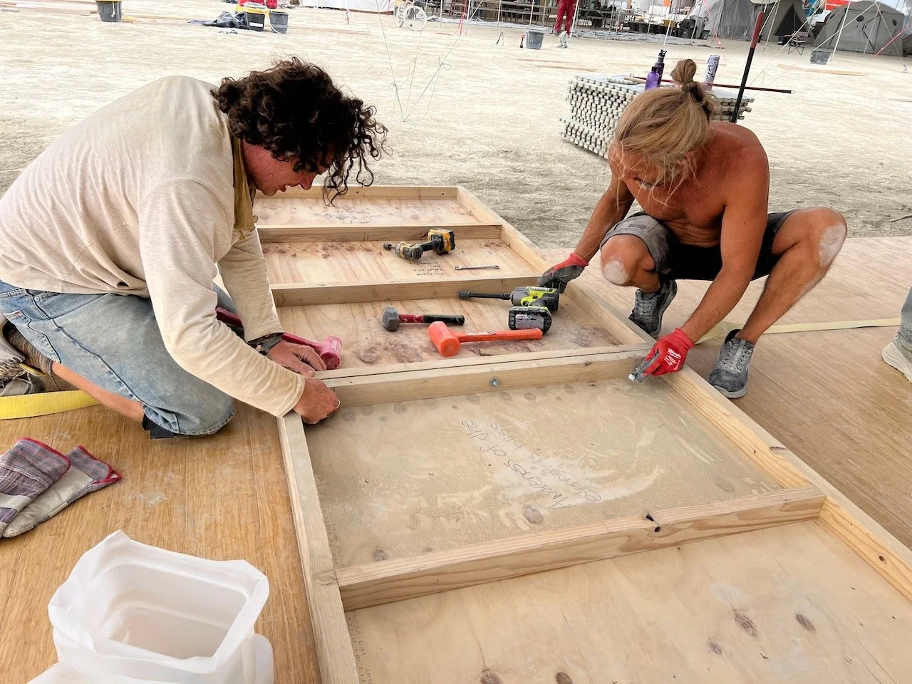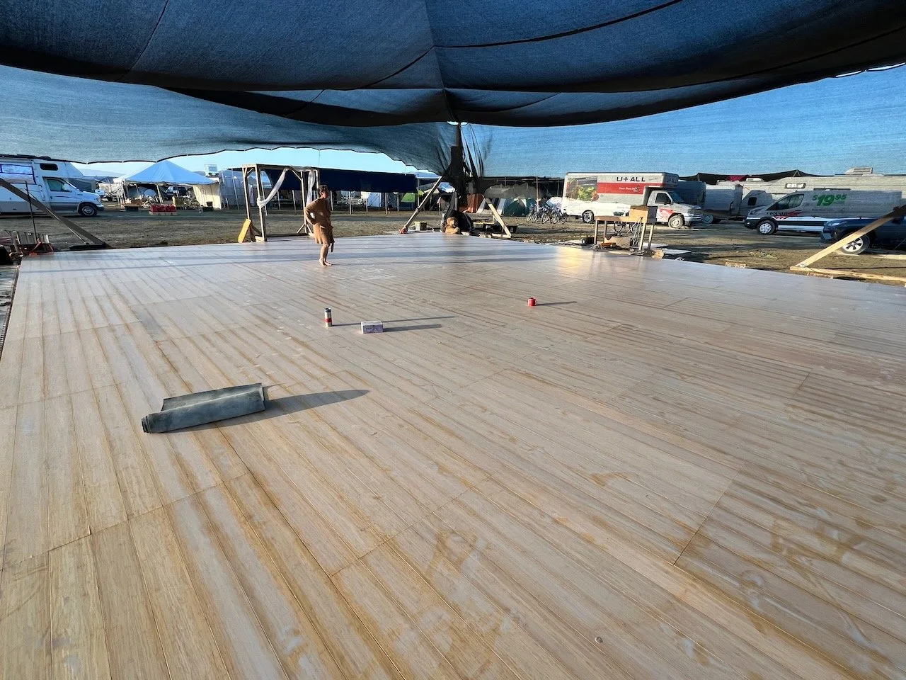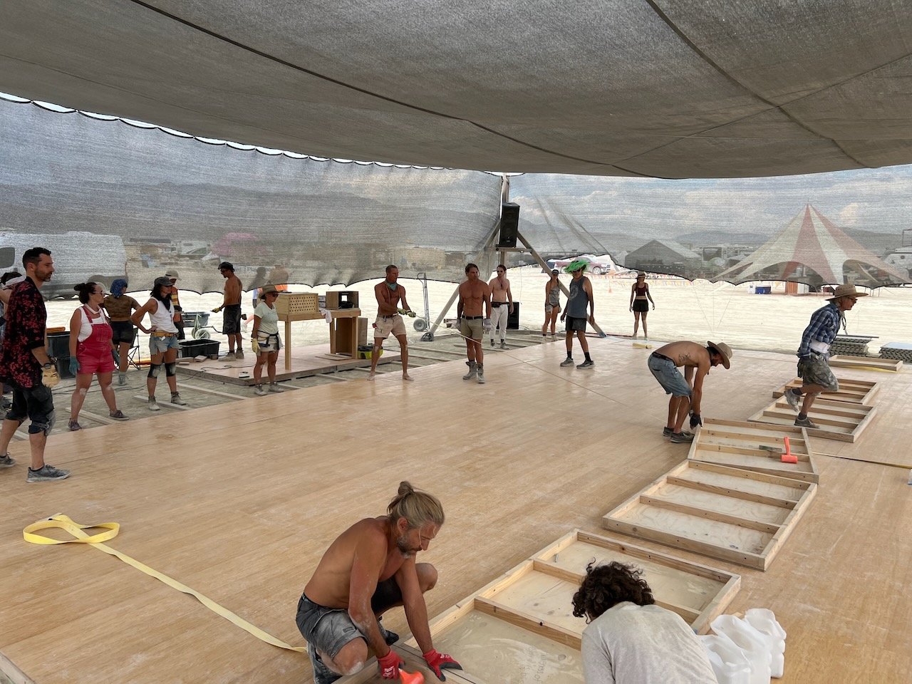Last burn, extreme weather and water damage took a serious toll on our dance floor and core infrastructure. While we were grateful to still keep the dance floor in action, the wear and tear means we now face critical repairs. We’re committed to making these repairs part of a broader offering — a community gathering to strengthen and expand what we bring to the playa, and build connection within our RhythmWave community off and on the playa.